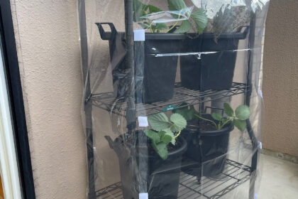 ベランダのガーデンラックを、100均アイテムを使って自作の温室にした